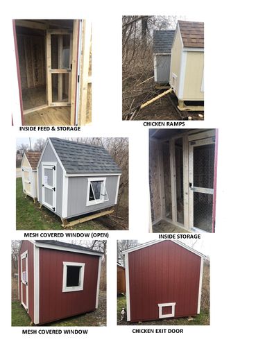 Fully assembled, heavy duty construction, hand-built chicken coops designed to comfortably house your chickens. You can choose from several colors available.